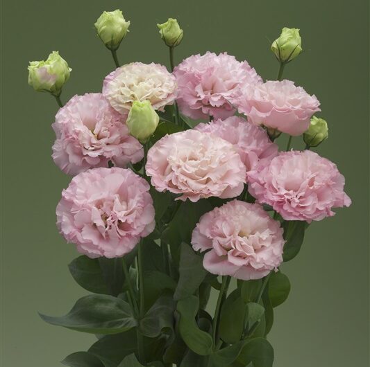 花弁枚数が多い緑芯のライトピンク。